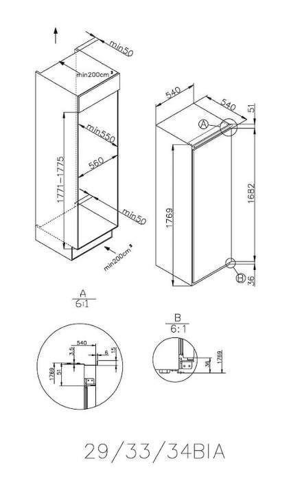 Vstavaná mraznička, Spotreba energie za rok kWh / rok) 263, Doba skladovania pri výpadku prúdu (hod) 11, Hlučnosť (dB (A)) 39