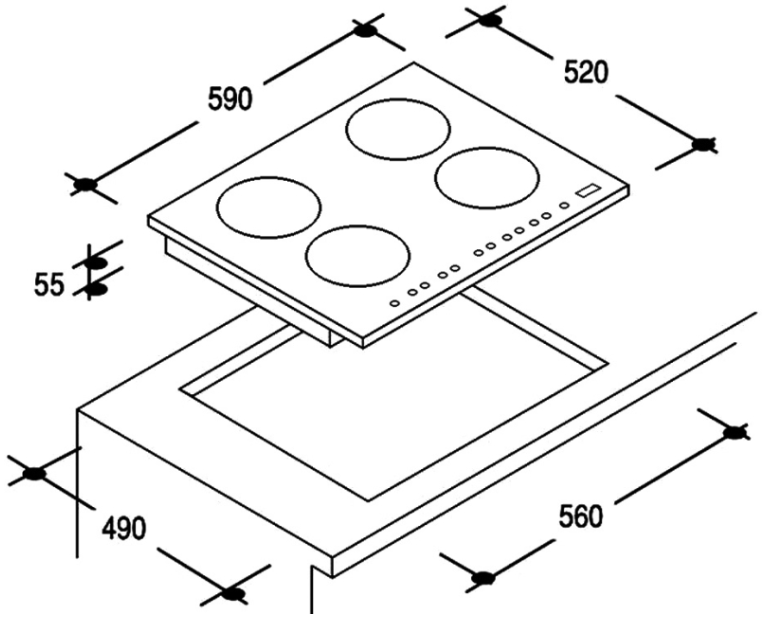 - rozmery výrez v x š x h [mm] – 52 x 480 x 560