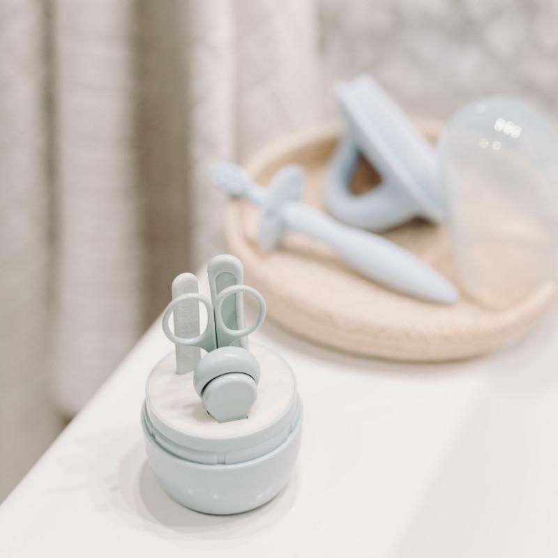 Súprava obsahuje nožnice, šikovné kliešte na nechty, jemný pilník na nechty a pinzetu. Dostupné v dvoch farebných prevedeniach. Aby sa minimalizovalo riziko neočakávaného pohybu dieťaťa, odporúča sa zastrihnúť nechty, keď dieťa spí. Súprava nie je vhodná do umývačky riadu. Nevyvárajte, pre dezinfekciu použite vhodný dezinfekčný prostriedok a opláchnite vodou.