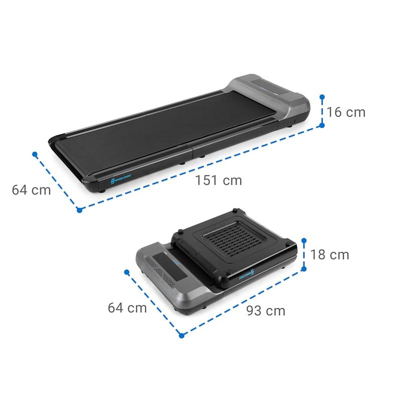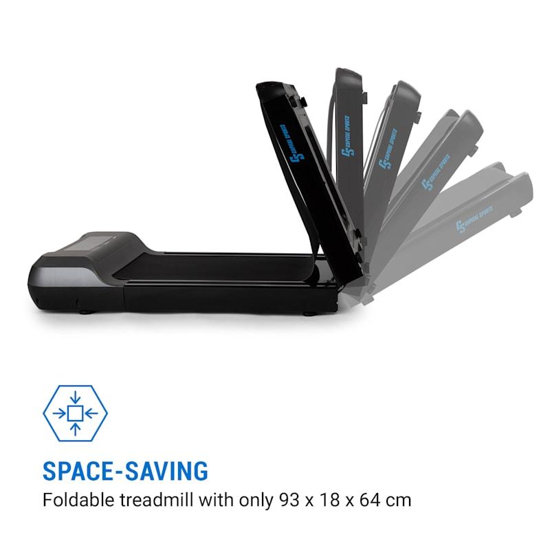 - Úspora miesta: skladací bežecký pás s rozmermi iba 93 x 18 x 64 cm