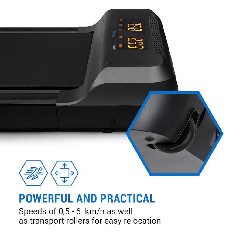 Absolvovaná vzdialenosť, doba behu, rýchlosť, spálené kalórie a zabehnuté kroky možno kedykoľvek zobraziť na prehľadnom LCD displeji, čo uľahčuje každodenný tréning. Rýchlosť bežeckého pásu Capital Sports Compact Space si môžeš nastaviť individuálne medzi 0,5 a 6 km/h a zvoliť si tak svoje tempo aj vlastnú úroveň náročnosti.
