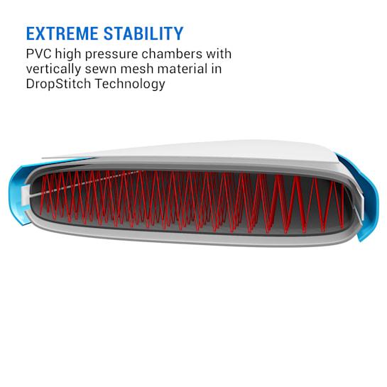 - Extrémna stabilita: vysokotlakové komory z PVC s vertikálne šitým sieťovým materiálom pomocou technológie DropStitch