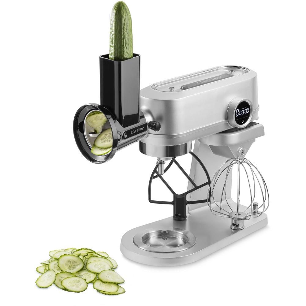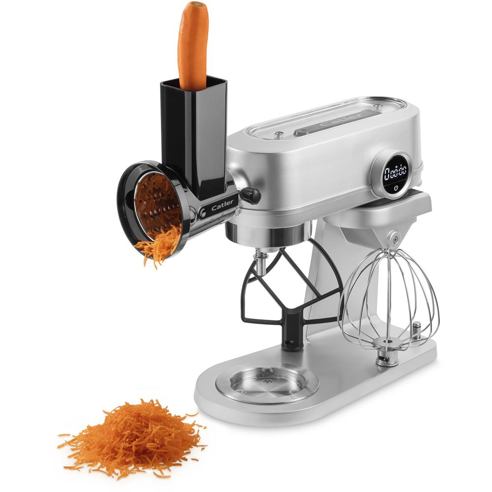 Spoznajte Rolls-Royce medzi kuchynskými robotmi. S novým modelom Catler KM 8012 sa konečne budete cítiť ako šéfkuchár - rozdáte úlohy a potom v tichosti budete sledovať zostávajúci čas na veľkom displeji. Predstavuje unikát na našom trhu, pretože je celokovový - od šľahacej metly po posledný prevod, ponúka profesionálny výkon pri každom z príslušenstiev a je extrémne tichý.