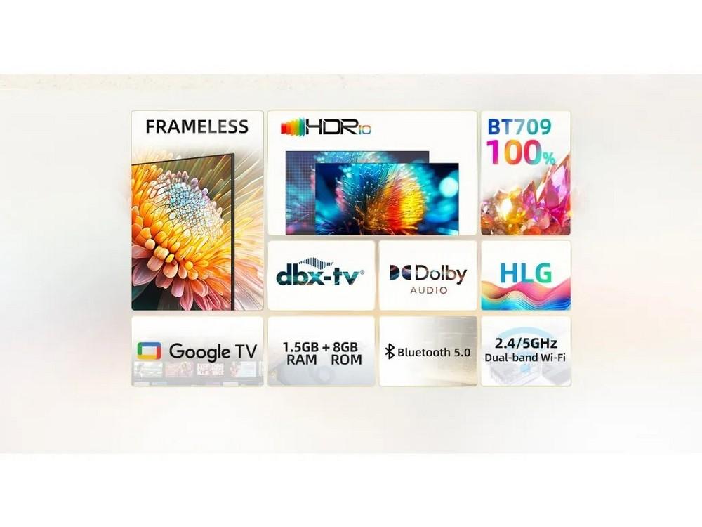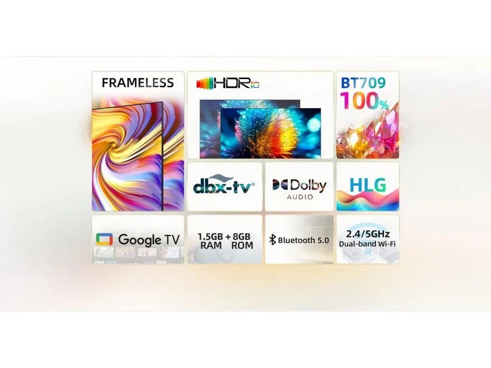 Smart TV, Rozlíšenie: HD Ready (1366×768), vysoký dynamický rozsah HDR10, HLG, bezrámčekový design, Celkový výkon: 2× 8 W