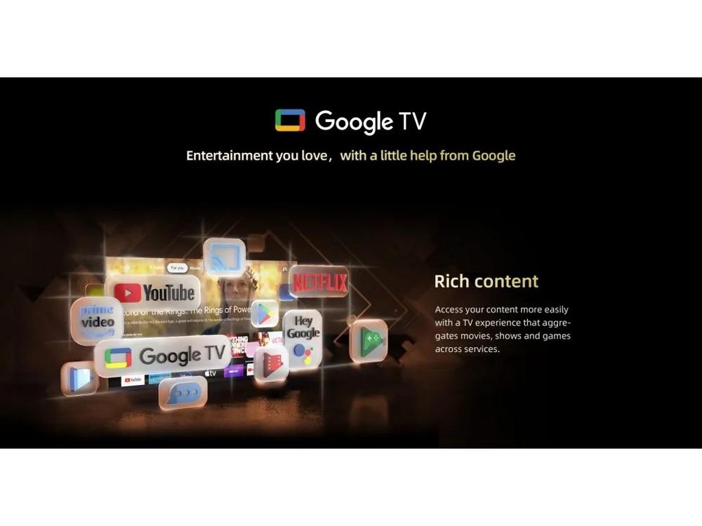 Smart TV, Uhlopriečka: 139 cm (55"), Rozlíšenie: 4K Ultra HD (3840×2160), Operačný systém Google TV, Celkový výkon: 2× 10 W