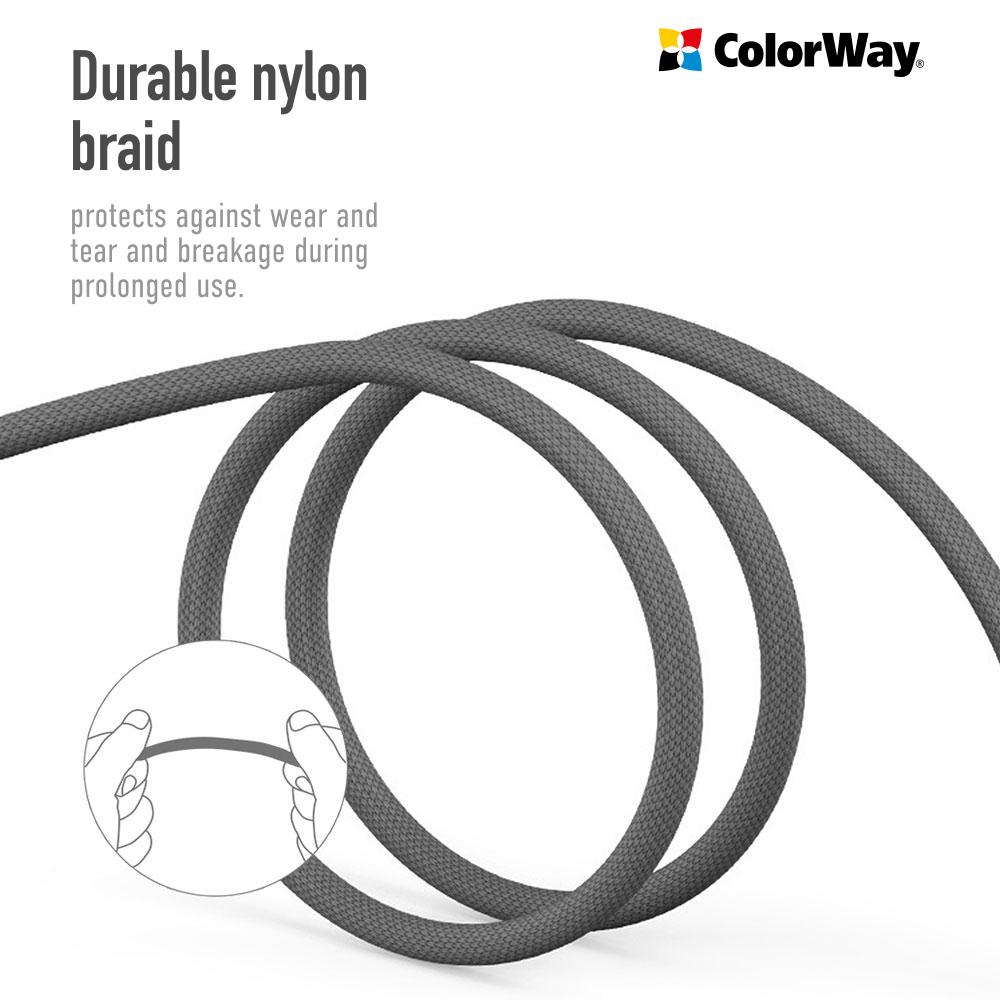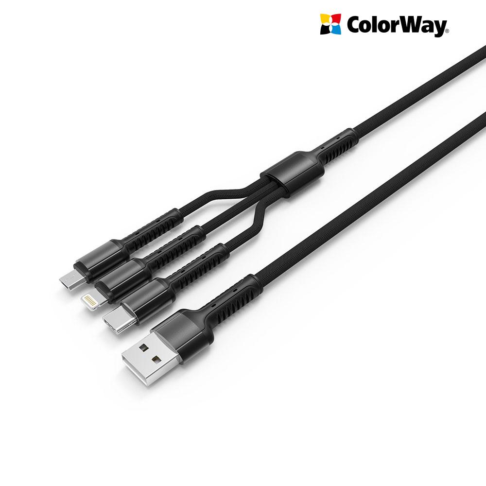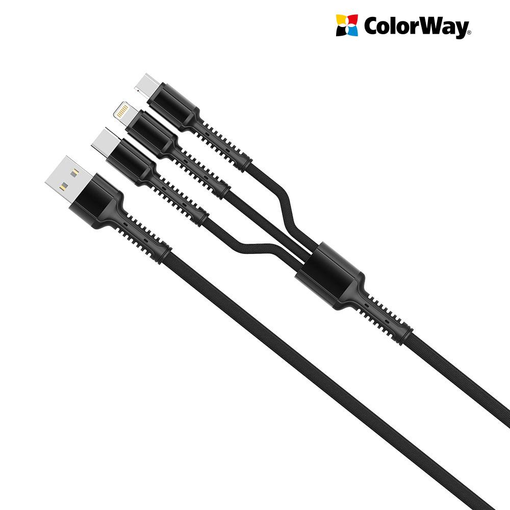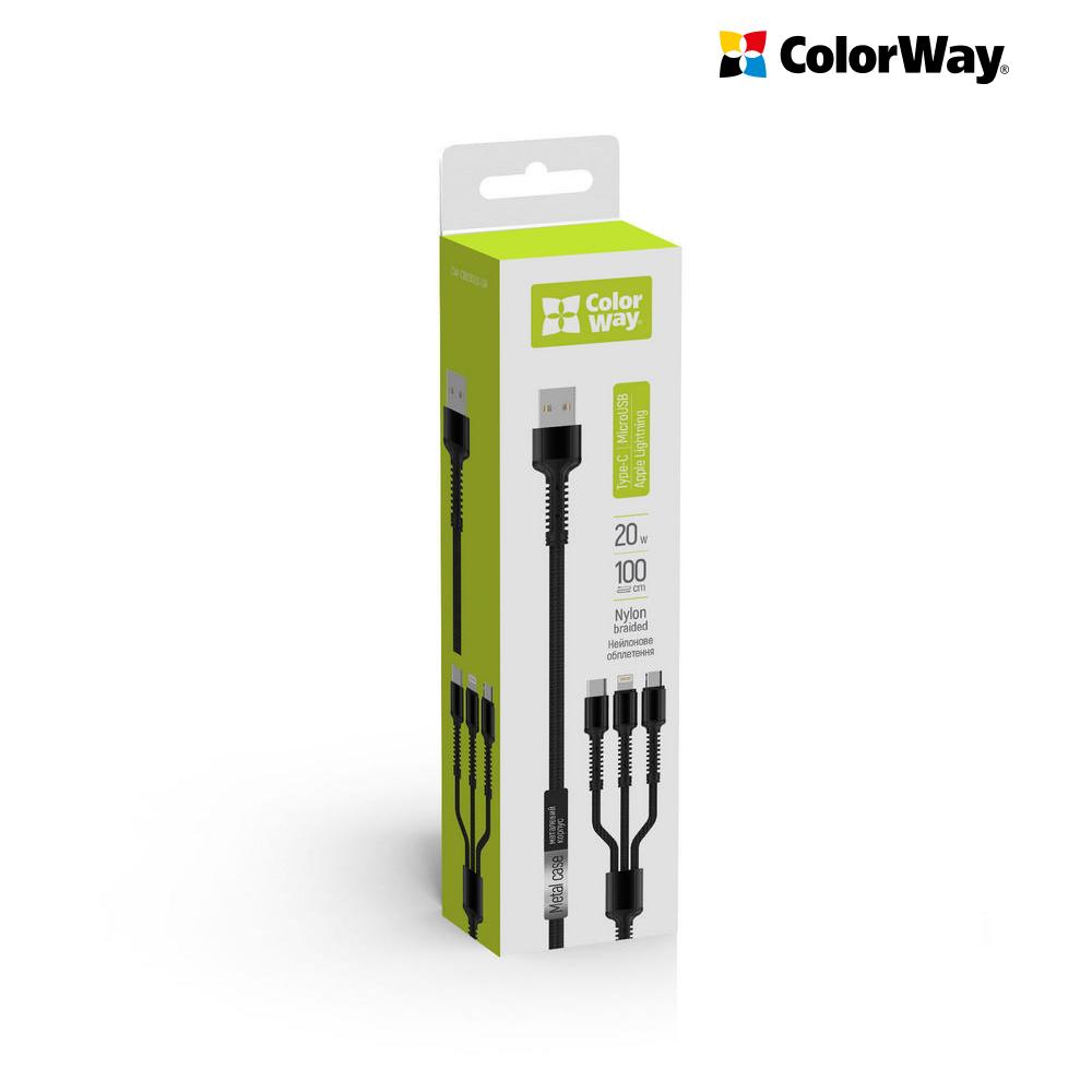 COLORWAY KABEL UNIVERZALNY 3V1 (LIGHTNING+MICROUSB+TYPE-C) 4.0A, 20W, 1.2M, GREY (CW-CBU3003-GR)
