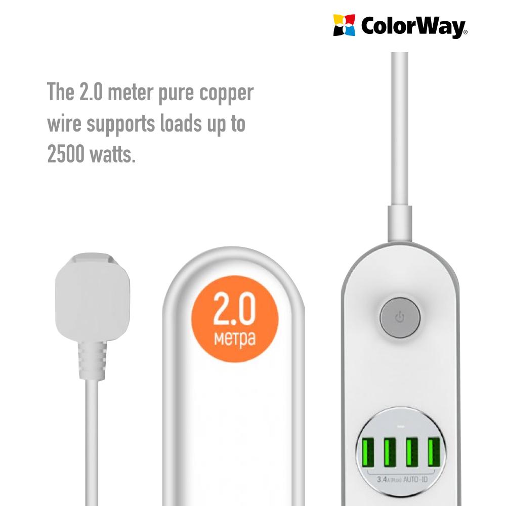 COLORWAY PREDLZOVACI KABEL 4X EUROZASUVKA, 4X USB BIELA (CW-CHE44W)