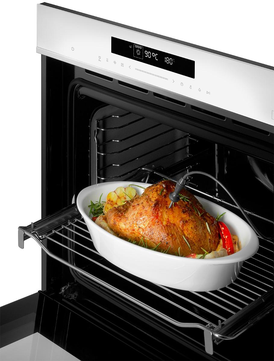 Rúra je vybavená špeciálnou sondou na pečenie, pomocou ktorej zmeriate presnú teplotu vo vnútri pokrmu. Oceníte ju predovšetkým pri príprave pečiva alebo mäsa, pretože budete s istotou vedieť, kedy je váš pokrm hotový a pripravený k servírovaniu. Výsledkom budú perfektne prepečené a šťavnaté pochúťky.