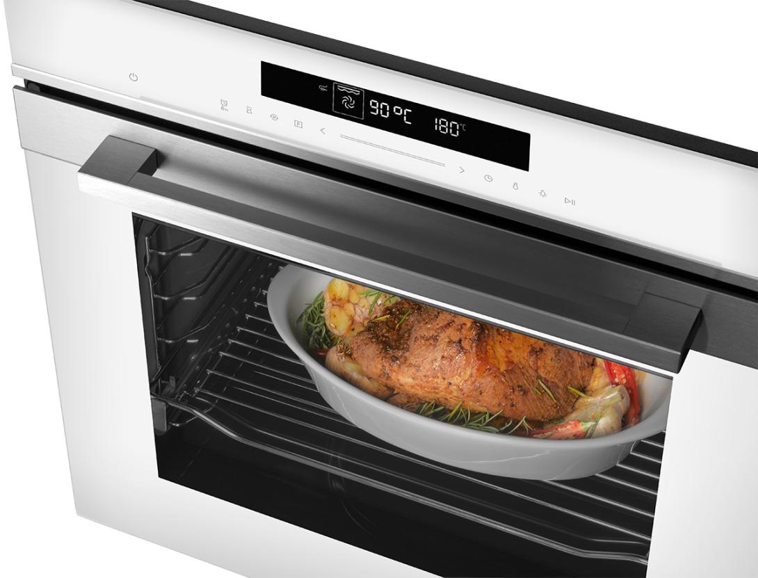 Model ETV8560wh ponúka 14 funkcií pečenia, vrátane teplovzduchu. Výhodou teplovzdušného pečenia je, že rúru nemusíte predhrievať, môžete v nej piecť dva plechy naraz a vďaka perfektne prepracovaným prieduchom vo vnútri rúry budú vaše pokrmy rovnomerne prepečené. Nechýba ani gril, EKO program pre energeticky úsporné pečenie, program na rozmrazovanie, na pizzu alebo na kysnutie cesta.