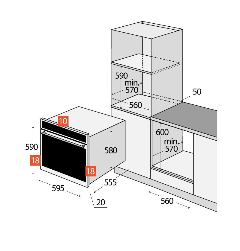 - Rozmery pre vstavanie (v x š x h): 595 x 560 x 570 (mm)