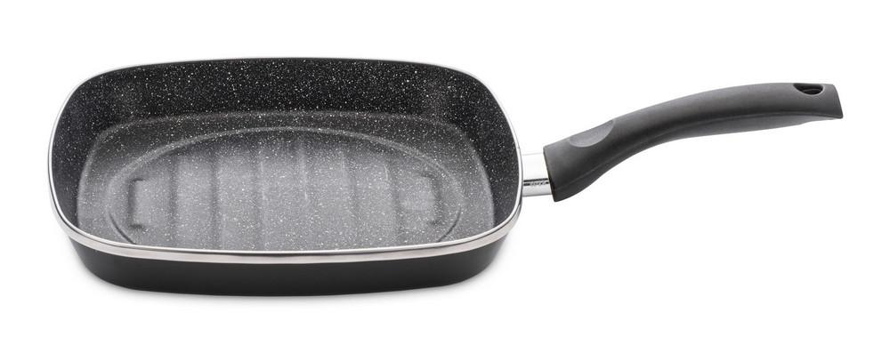 Grilovacia panvica, Rozmer: 27 x 27 cm, Vhodná do umývačky riadu, Bakelitová rúčka, ktorá ostáva chladná (nie je vhodná do rúry)