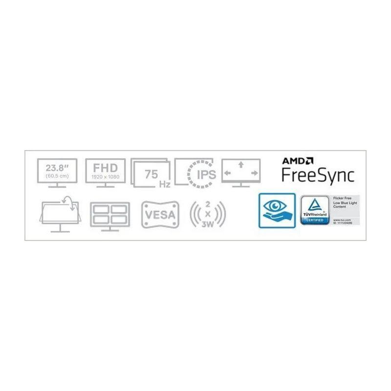 Monitor, Uhlopriečka [palce]: 23.8" (60.45 cm), Rozlíšenie: Full HD (1920 x 1080), Obnovovacia frekvencia: 75Hz, Jas [cd/m2]: 250, Odozva [ms]: 4 ms (sivá-šedá) v extrémnom režime