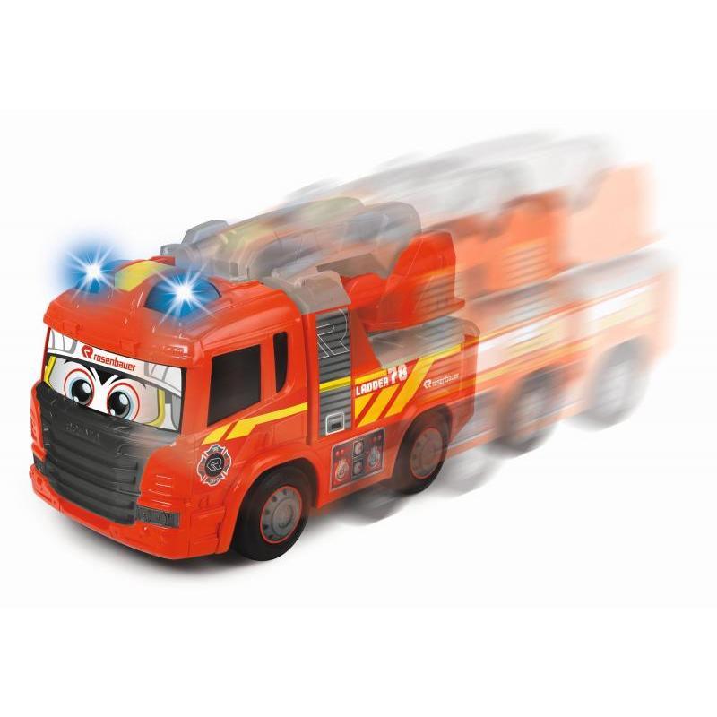 Hasičské auto Scania pre najmenších, motorizované pre jazdu vpred/vzad (ide úplne samo stlačením tlačidla), možný pohyb na voľnobeh. Prepínacie svetelné a zvukové efekty sa spúšťajú stlačením tlačidla, pohyblivé časti - otočný rebrík. Auto je samozrejme stálofarebné, odolné proti slinám, bez malých častí, ktoré je možné prehltnúť a so zaoblenými rohmi. Dĺžka 25 cm.
