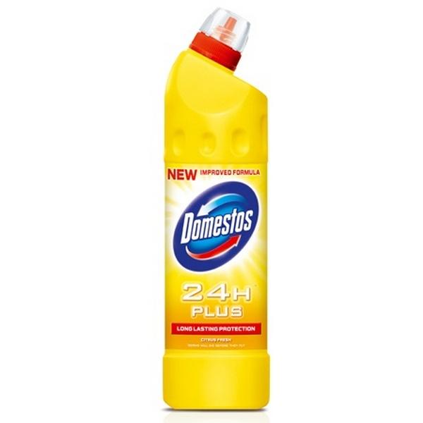 Domestos 24 H Plus tekutý čistiaci a dezinfekčný prípravok je určený k čisteniu a dezinfekciu silno znečistených miest, najmä tam, kde sa môžu vyskytovať baktérie alebo plesne. Domestos je možné používať v celej domácnosti, ako v neriedenom stave, tak aj riedený s vodou.