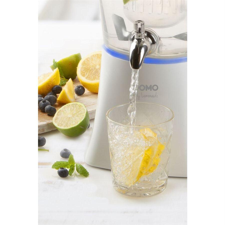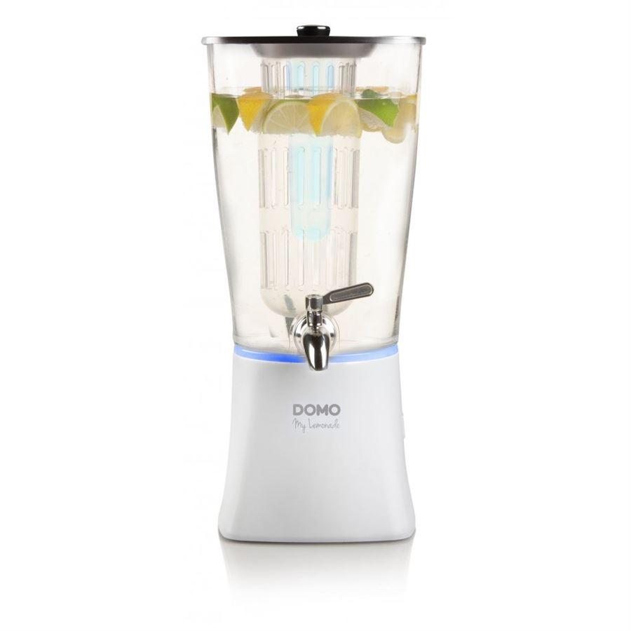 Domáci limonádovník - dávkovač nápojov DOMO DO9197LD s vyberateľnou mriežkou na čerstvé ovocie, bylinky a ďalšie ingrediencie sa vďaka svojmu efektnému podsvieteniu a automatickému miešaniu stane ozdobou každej oslavy, párty, alebo posedenia s priateľmi. Otáčajúca sa vrtuľka na dne nádoby pomaly premiešava vodu cez vložené ovocie a zaisťuje tak rýchlejšie spojenie jeho chuti s vodou. Použité materiály BPA free spĺňajú najprísnejšie normy pre styk s potravinami.