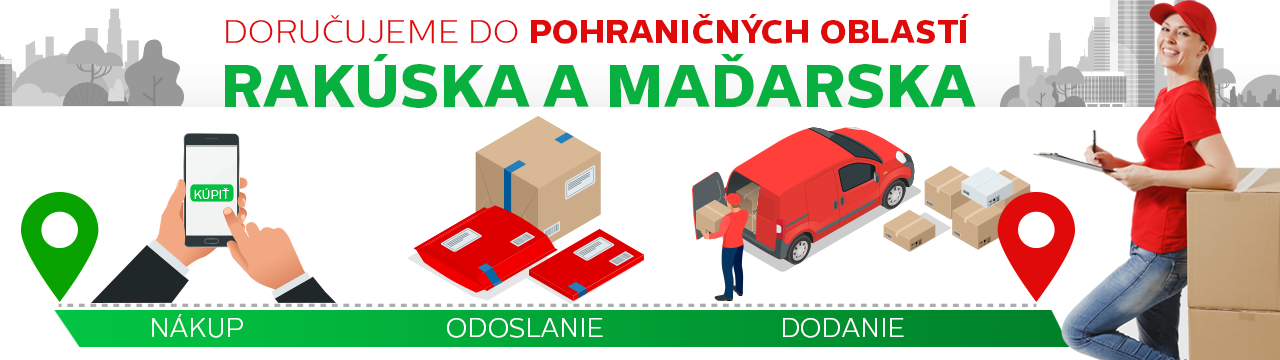 Rozšírili sme doručovanie aj do vybraných pohraničných obcí - v okolí maďarských a rakúskych hraníc. Poplatok za doručenie je 21,90 EUR.