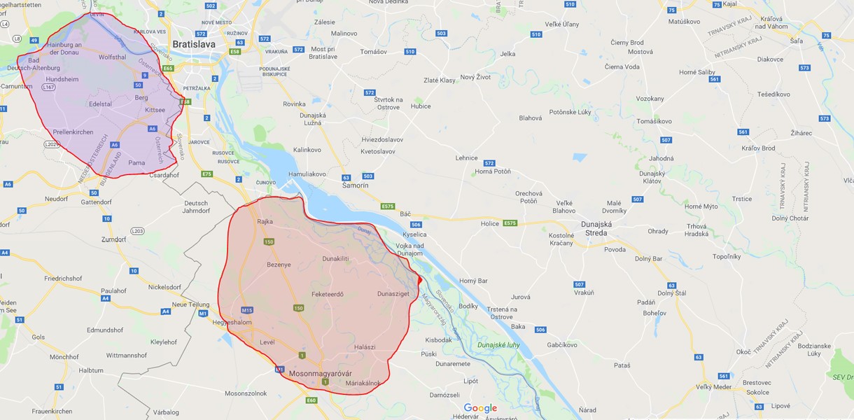 Doručenie sa týka týchto obcí v Maďarsku : RAJKA , BEZENYE, DUNAKILITI, HEGYESHALOM, LEVÉL, FEKETEERDO , MOSONMAGYARÓVÁR, DUNASZIGET, HALÁSZI.