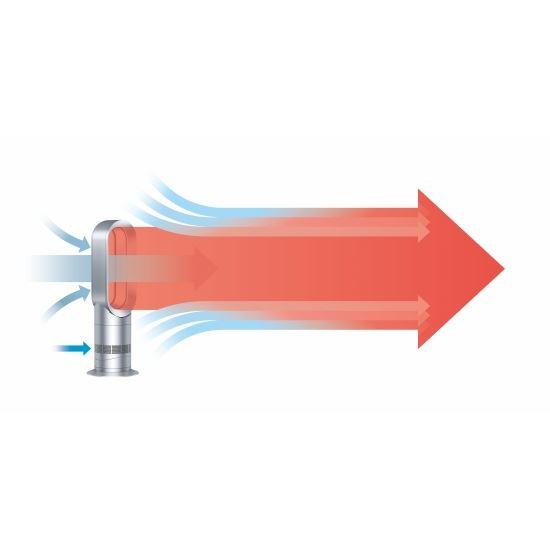 Teplovzdušný ventilátor Dyson využíva technológiu Air Multiplier™ pre vytvorenie silného rovnomerného prúdu vzduchu.
