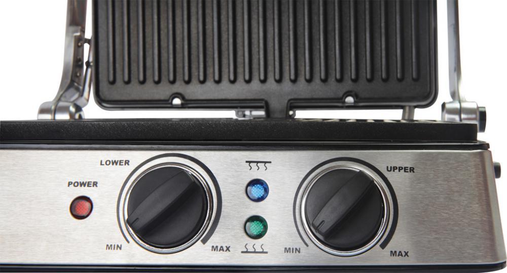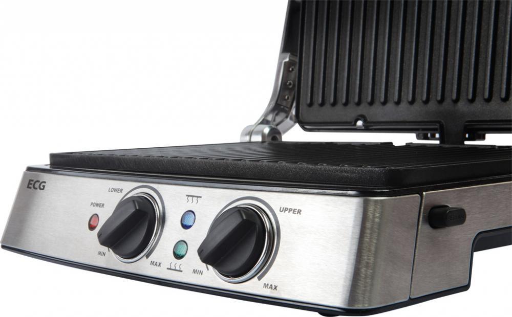 3 prevádzkové polohy - pre zapekanie, grilovanie a BBQ, 2 nezávislé termostaty, Odnímateľné grilovacie dosky s nepriľnavou povrchovou úpravou, Variabilné nastavenie teploty až do 220 ° C