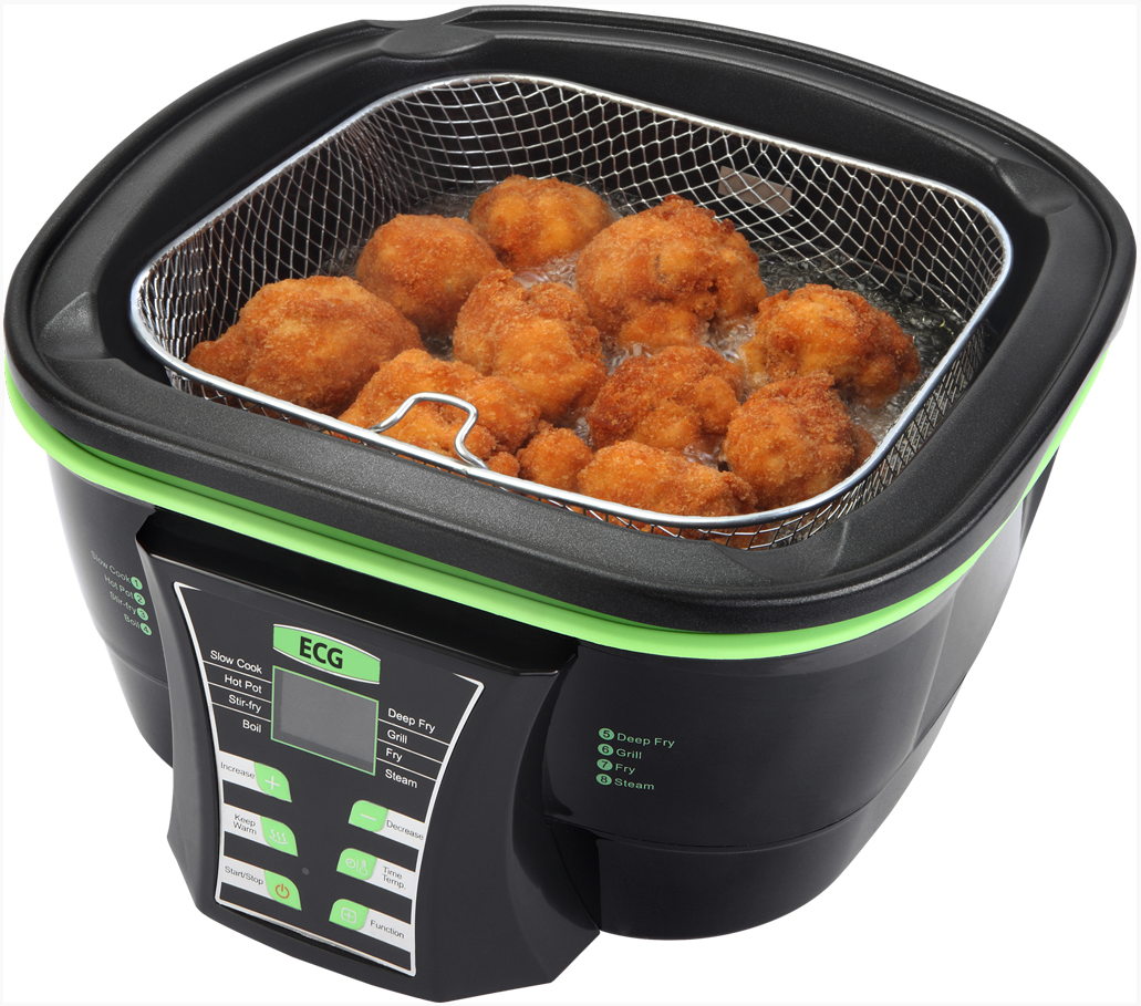 Ideálny mnohostranný pomocník do kuchyne, ktorý šetrí Váš čas i peniaze za spotrebiče, ktoré tento hrniec dokáže spoľahlivo nahradiť. Hrniec má 9 funkcií - fondue, pomalé varenie, dusenie, smaženie, varenie, fritovanie, grilovanie, zapekanie, varenie v pare. Aby mohla byť všestrannosť hrnca splnená, súčasťou balenia je aj nevyhnutné príslušenstvo: fondue set 6 vidličiek, mriežka na varenie v pare, mriežka na grilovanie, odkvapkávacia mriežka na prebytočný olej, fritovací kôš. Výhodou je aj jednoduché čistenie, stačí vybrať a umyť nádobu, pokrievku, prípadne príslušenstva a hrniec je opäť pripravený na použitie. Objem nádoby 5 l, nastaviteľná teplota 50-240 ° C, tepelne izolovaný plášť, to sú všetko ďalšie báječné parametre tohto hrnca.
