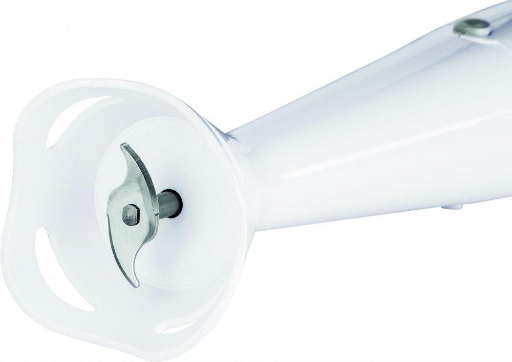 Veľmi tichý motor s výkonom 200 W, 2 rýchlostné tlačidlá Soft-Touch, Nerezový sekací nôž, Veľmi nízka hmotnosť a tichá prevádzka