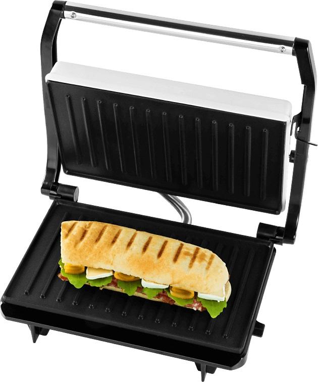 Panini maker / Mini gril, Vhodné k príprave panini, zapečených toustov, mäsa, zeleniny, Jednoduchá údržba vďaka nepriľnavej úprave plôch na pečenie, Tepelne izolované madlo, Zámok dosiek pre ľahšiu manipuláciu