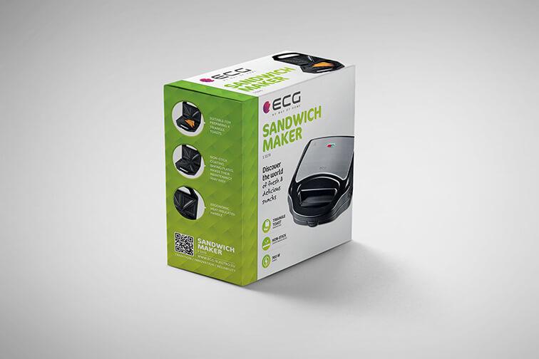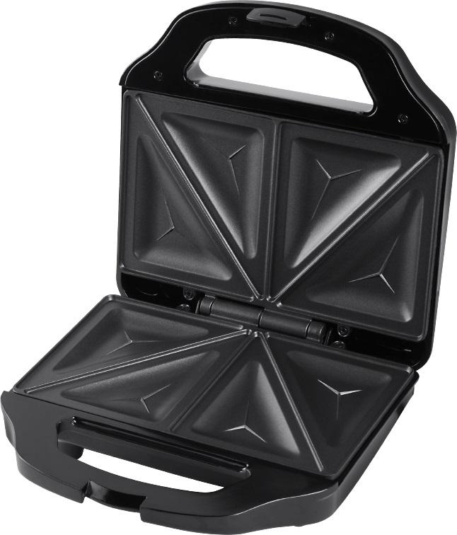 Sendvičovač, Príprava 4 trojuholníkových sendvičov naraz, Čierny sendvičovač kombinovaný s nerezovou plochou, Jednoduchá údržba vďaka nepriľnavej úprave plôch na pečenie,Tepelne izolované madlo