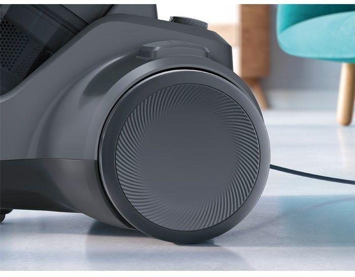 - Mäkké kolieska: Mäkké kolieska zaisťujú, že sa vaša podlaha počas vysávania nepoškriabe a takisto vydávajú menej hluku pri popoťahovaní vysávača.