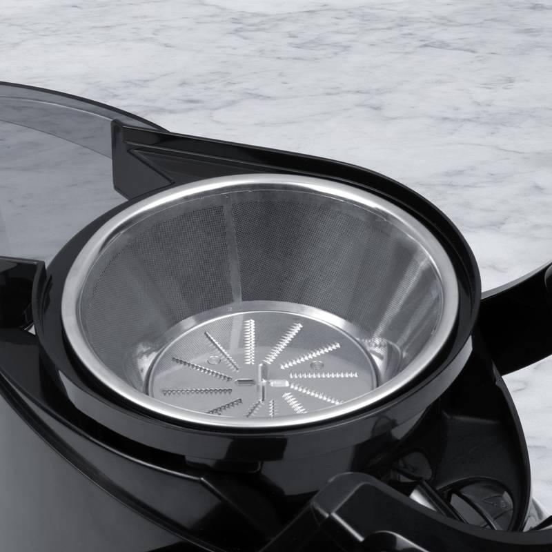 - Jemné otvory filtra zabezpečujú účinnú filtráciu šťavy a minimálny obsah dužiny.