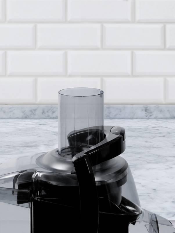 Vďaka veľkému plniacemu otvoru už príprava nevyžaduje veľké úsilie. Širší dizajn je vhodný na väčšie kusy ovocia a zeleniny – alebo dokonca na celé jablko.