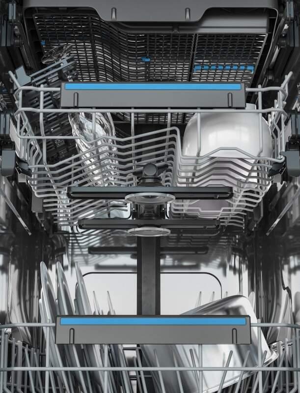 - Ukazovatele funkcií: leštidlo, soľ, budík, posunutý štart 3h, fáza sušenia, vybraný program, dvojfarebný svetelný ukazovateľ na podlahe , XtraPower, ekonomické, Machine Care