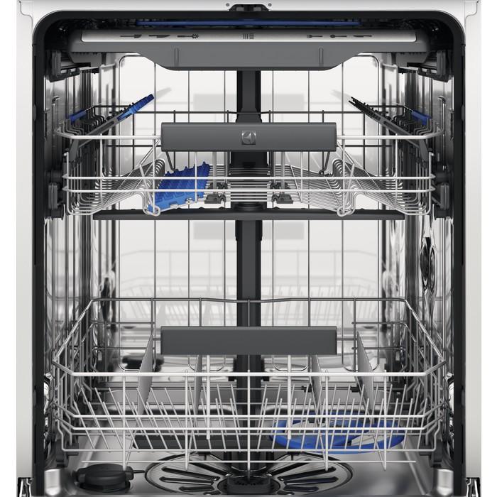 - Vlastnosti horného koša: 2 sklopné držiaky, 2 sklopné drôtené úchyty na poháre, 2 mäkké gumové špičky , 6 úchytov na poháre na víno, sklopné držiaky na poháre, plastová rukoväť Electrolux, postranné držiaky košíka