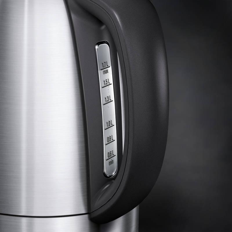 - Dva veľké ukazovatele úrovne vody: Dva veľké, jasne viditeľné ukazovatele úrovne vody umožňujú jednoduchú kontrolu množstva vody pri plnení kanvice.