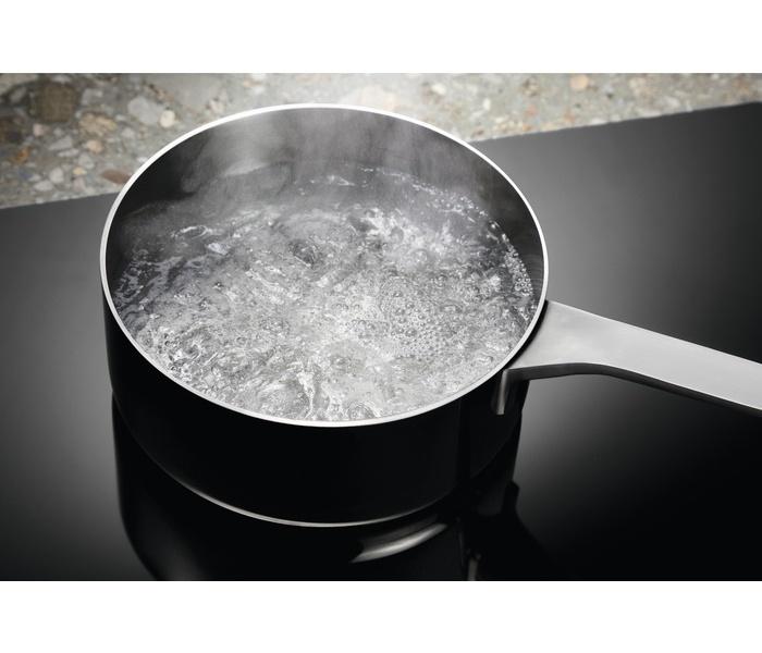Senzor varu rozpozná, kedy voda v hrnci dosiahne bod varu. Automaticky prispôsobí intenzitu ohrevu tak, aby sa masívne bublanie stíšilo na kontrolované varenie. Vy tak nemusíte sledovať hrnca a môžete sa venovať príprave chutných jedál.