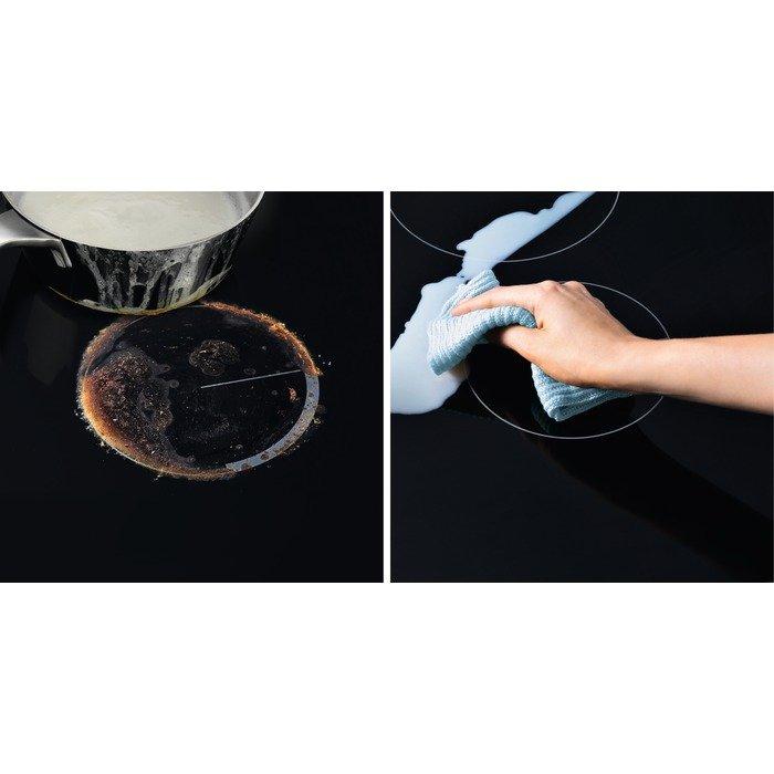 Zachovajte varný panel počas varenia čistý. Technológia indukcie zabezpečuje, že oblasti okolo varných zón zostanú studené na dotyk. Takže aj keď varíte pri vysokých teplotách, môžete jednoducho a bezpečne odstrániť vykypené jedlo ihneď, ako k tomu dôjde.