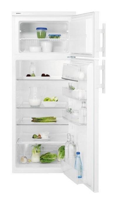 Electrolux EJ2801AOW2. Dizajn skrine: voľne stojace, Farba: biela, Uchytenie dverí: Pravý. Celkový čistý objem: 265L, Klimatická trieda: SN, ST, N, Úroveň hluku: 40 decibel. Čistá kapacita chladničky: 215L. Umiestnenie mrazničky: Umiestnený hore, Čistá kapacita mrazničky: 50L, Mraziaci výkon: 4 kg/24h. Trieda energetickej účinnosti: A+, Celková spotreba: 125 watt, Ročná spotreba energie: 242 kWh