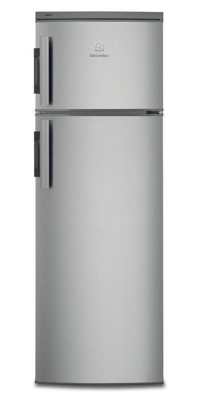 Electrolux EJ2801AOX2. Dizajn skrine: voľne stojace, Farba: strieborná, nerezová oceľ, Uchytenie dverí: Pravý. Celkový čistý objem: 265 L, Klimatická trieda: SN, ST, N, Úroveň hluku: 40 decibel. Čistá kapacita chladničky: 215 L. Umiestnenie mrazničky: Umiestnený hore, Čistá kapacita mrazničky: 50 L, Mraziaci výkon: 4 kg/24h. Trieda energetickej účinnosti: A+, Celková spotreba: 125 watt, Ročná spotreba energie: 242 kWh