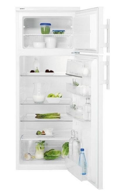 Electrolux EJ2802AOW2. Dizajn skrine: voľne stojace, Farba: biela, Uchytenie dverí: Pravý. Celkový čistý objem: 265L, Klimatická trieda: SN, ST, T, N, Úroveň hluku: 40 decibel. Čistá kapacita chladničky: 215L. Umiestnenie mrazničky: Umiestnený hore, Čistá kapacita mrazničky: 50L, Mraziaci výkon: 3 kg/24h. Dĺžka kábla: 2,4 meter