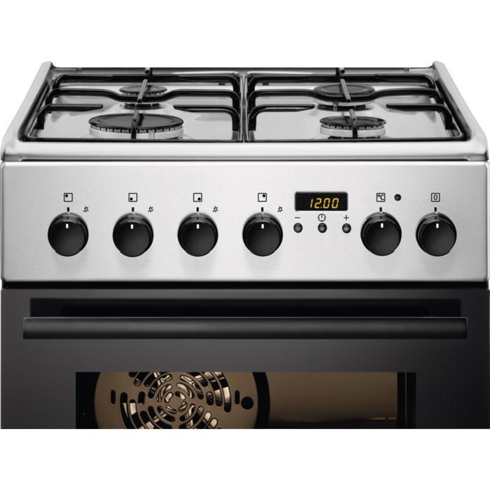 - Funkcie vrchnej rúry: vrchný a spodný ohrev + ventilátor, vrchný a spodný ohrev, kruhové teleso + ventilátor, kruhové teleso + spodný ohrev + ventilátor, osvetlenie, gril + vrchný ohrev + ventilátor, ventilátor + vrchný ohrev, ventilátor, spodný ohrev