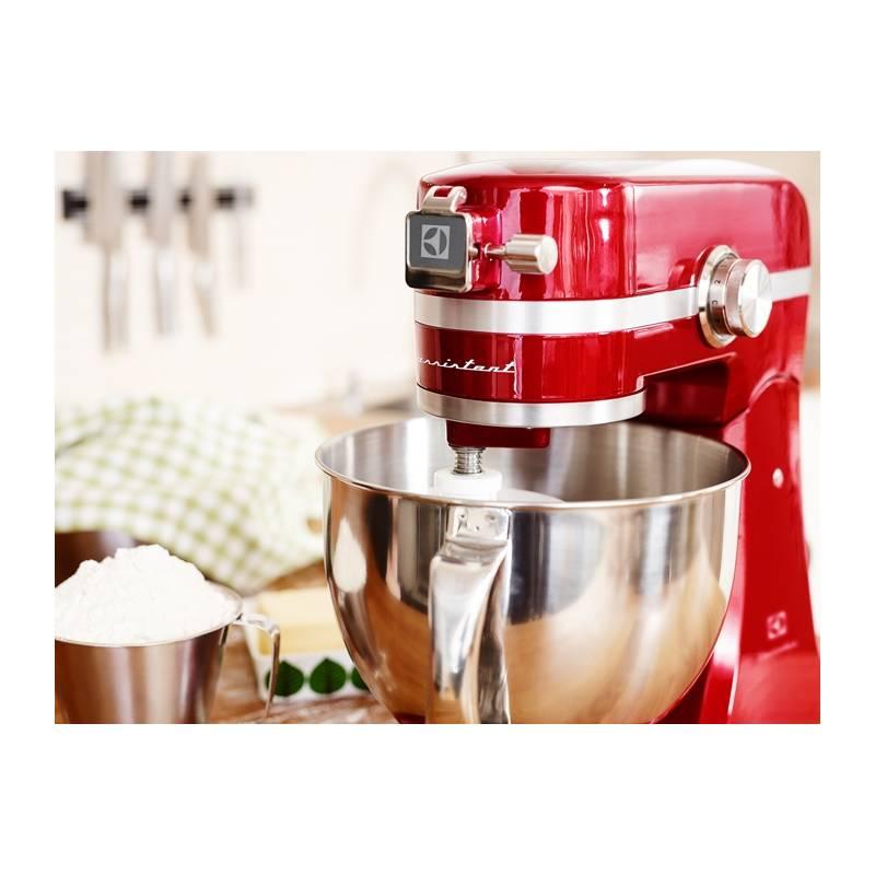 Kuchynský robot Electrolux EKM4000 je moderný a komfortný pomocník do každej kuchyne. Multifunkčný robot dokáže miesiť, miešať, mixovať aj šľahať. V praktickom príslušenstve nájdete špirálový miesič cesta na ťažké a tuhé cestá s kvasnicami, metlu na šľahanie a plochý hnetač na perfektný sneh, smotanu aj krémy. Dômyselný systém uchytenia nástavcov vám uľahčí a urýchli ich zostavenie a výmenu. Na prípravu surovín je prístroj vybavený 2 nerezovými misami. Využiť môžete 2,9 litrový aj 4,8 litrový objem. Bez problémov tak pohostíte väčšiu rodinu aj návštevu. Nastaviť si môžete 10 rôznych rýchlostí s maximálnym výkonom až 1000 Wattov. Biela LED dióda navyše osvetľuje vnútro misy pre lepšiu kontrolu a ešte efektívnejšiu prácu.