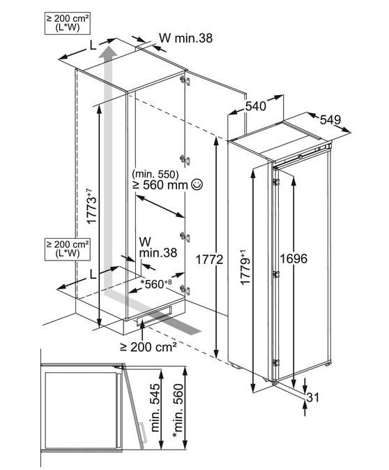 - Rozmery pre zabudovanie : 1772 x 546 x 549 mm