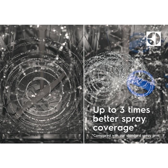 Vďaka priekopníckemu satelitnému umývaciemu ramenu v našej novej umývačke je dosiahnutý každý roh a každý predmet v spotrebiči. Jeho inovatívny spôsob používania vody umožňuje vyčistenie od jedného rohu k druhému, takže aj natesno naskladaný riad alebo objemné predmety budú ako nové. Bez šmúh, bez škvŕn. Jednoducho bez škvŕn na každom povrchu.