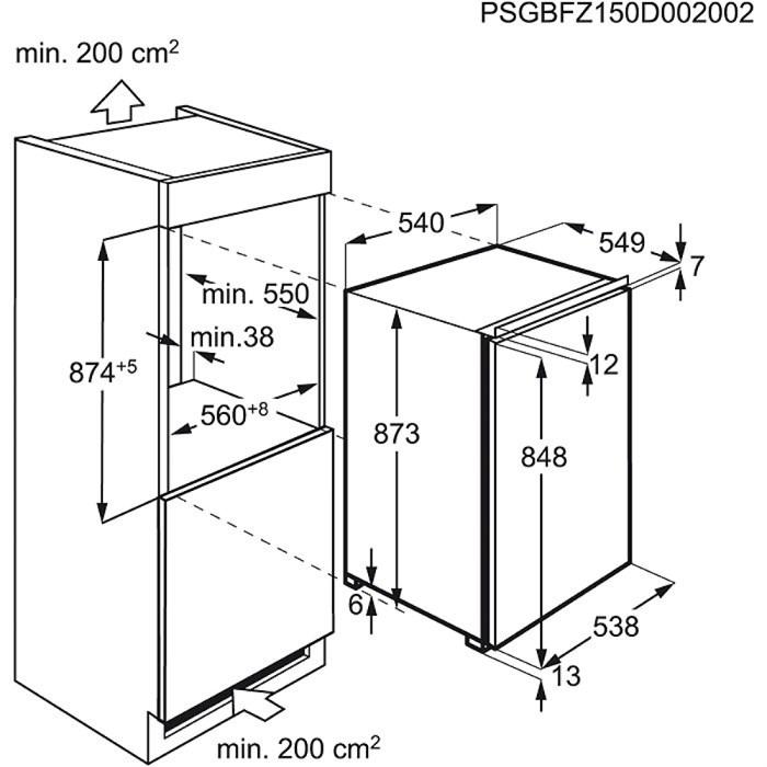 - Rozmery pre zabudovanie (mm): 873 x 540 x 549