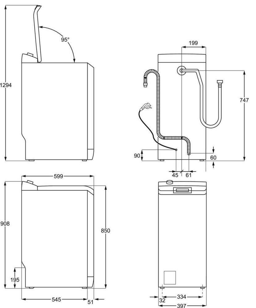 Vrchom plnená práčka, Množstvo bielizne: 7 kg, Maximálne otáčky: 1300 ot./min., Úroveň emisií hluku šíreného vzduchom (dB (A) re 1pW): 79