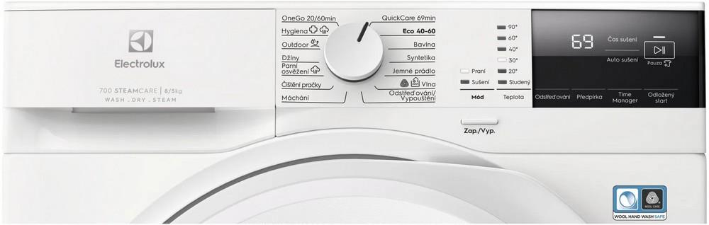 - Programy: QuickCare 69 min., Eco 40-60, bavlna, syntetika, jemná bielizeň, vlna, odstredenie/vypustenie, plákanie, Machine Clean, para osvieženie, rifle, športová bielizeň, Hygiene, Onego 20/60Min