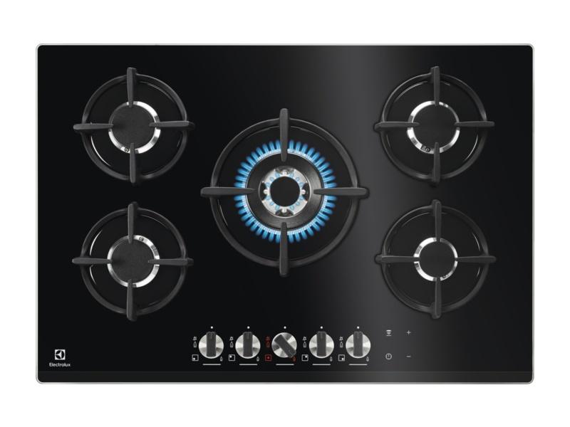 Plynový varná doska, Typ ohrevu: Plyn na skle, Rozmery pre zabudovanie VxŠxH (mm): 43x560x480, Hlavná farba: čierna, Skupina: Zabudovateľná