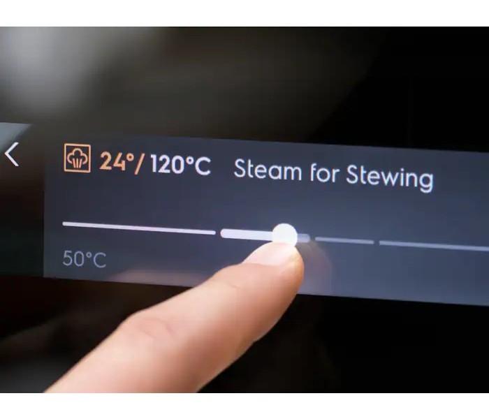 • Elektronické funkcie: 260 predpripravených varných programov Assist (senzor hmotnosti/pokrmu/para/SousVide), 30 jazykov, akustický signál, ovládanie aplikácií, automatické vypnutie, nastaviteľná hlasitosť zvukového upozornenia, Check Result/Time extension (Finish Assist by remaining 10% duration), Child lock (in off mode), minútka pre čistenie, Clock style in standby (2 versions), konektivita, čas varenia, čas varenia s odhadovaným koncom, vypúšťanie pary, demo program s kódovaním, odstraňovanie vodného kameňa, nastavenie jasu displeja, Display Full colour TFT touch 175x35mm, Drying function after cavity steaming, elektronická regulácia teploty, rýchle predohriatie s výberom možností, senzor pokrmu, automatické vypnutie senzoru pokrmu, ukazovateľ teploty senzoru pokrmu, senzor pokrmu s odhadom času, Info button & short function description, udržiavanie teploty 65°C rozšírené o pečenie pri nízkej teplote a nastavenie senzoru pokrmu, tóny tlačidiel a tóny alarmu a chýb - aktivácia / deaktivácia (okrem ZAP/VYP), jazyky / textový displej, hlavný vypínač, denná pamäť 3 dni späť, minútka, zapnutie/vypnutie osvetlenia rúry (menu + samostatné tlačidlo), Over the air update (OTA), ukazovateľ skutočnej teploty (°C) , indikácia zvyškového tepla (°C), využitie zvyškového tepla, preplachovanie, servisné informácie, nastavenie spustenia, nastavenie tvrdosti vody, čistenie parou (2 cykly: Steam Cleaning, Steam Cleaning Plus), vypnutie času dňa v stave vypnutia, odporučaná teplota, denný čas