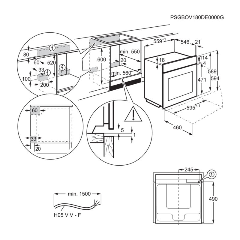 Zabudovateľná parná rúra, Rozmery pre zabudovanie VxŠxH (mm): 590x560x550, Celkový elektrický príkon (W): 3500, Vnútorný objem (l): 70