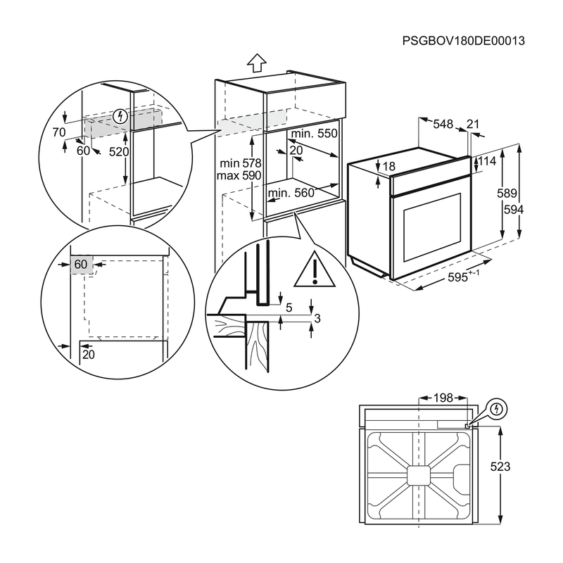 - Rozmery pre zabudovanie VxŠxH (mm): 600x560x550
