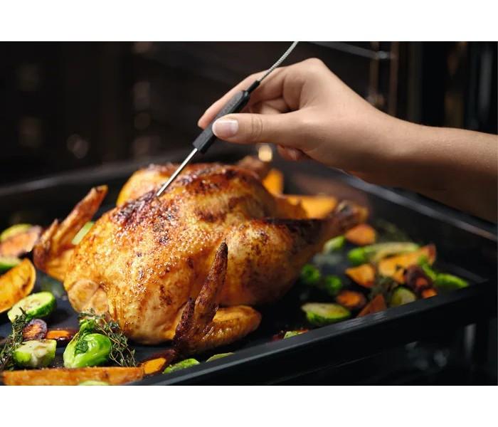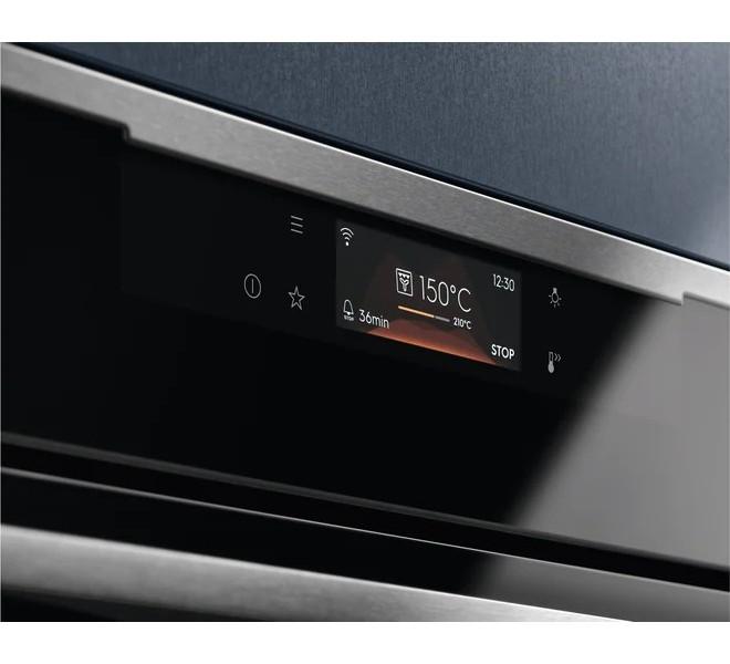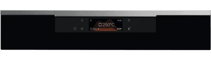 - Elektronické funkcie: 160 predpripravených varných programov Assist (senzor hmotnosti/pokrmu), 3 obľúbené programy, 3 pyrolytické cykly, 30 jazykov, akustický signál, ovládanie aplikácií, automatické vypnutie, nastaviteľná hlasitosť zvukového upozornenia, Check Result (Finish Assist by remaining 10% duration), Child lock (in off mode), minútka pre čistenie, Clock style in standby (2 versions), konektivita, čas varenia, čas varenia s odhadovaným koncom, denný čas, demo program s kódovaním, nastavenie jasu displeja, Display Full colour TFT touch 95x35mm, elektronická regulácia teploty, elektronický zámok dvier, rýchle predohriatie s výberom možností, senzor pokrmu, automatické vypnutie senzoru pokrmu, ukazovateľ teploty senzoru pokrmu, senzor pokrmu s odhadom času, udržiavanie teploty 65°C rozšírené o pečenie pri nízkej teplote a nastavenie senzoru pokrmu, tóny tlačidiel a tóny alarmu a chýb - aktivácia / deaktivácia (okrem ZAP/VYP), jazyky / textový displej, hlavný vypínač, denná pamäť 3 dni späť, minútka, zapnutie/vypnutie osvetlenia rúry (menu + samostatné tlačidlo), pyrolytické čistenie (3 cykly: rýchly, normálny, intenzívny), ukazovateľ skutočnej teploty (°C) , indikácia zvyškového tepla (°C), využitie zvyškového tepla, servisné informácie, vypnutie času dňa v stave vypnutia, odporučaná teplota